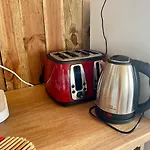 La cocina completa cuenta con servicio de tetera/cafetera, hervidor eléctrico, nevera y también horno.